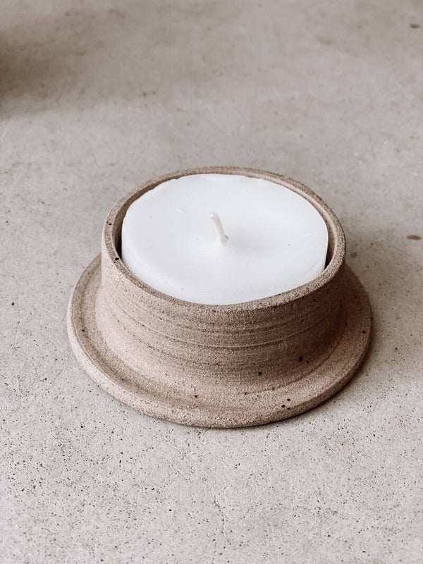 - Handgedraaide keramieken theelichthouder met theelichtje.